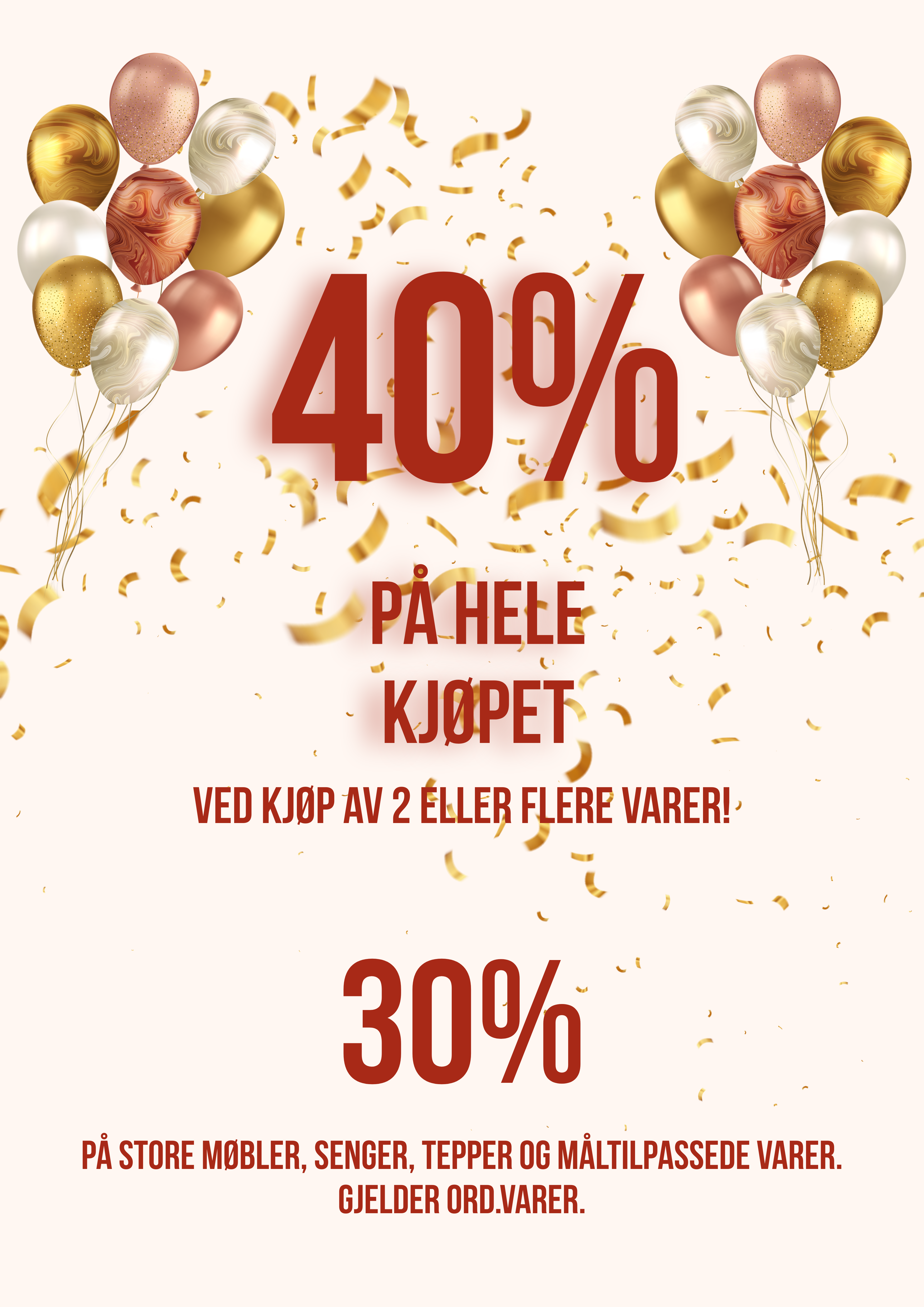 Kilden senter fyller 40 år, og dette feirer vi med ballongpyntet senter, og gode priser i butikkene fra torsdag til lørdag: